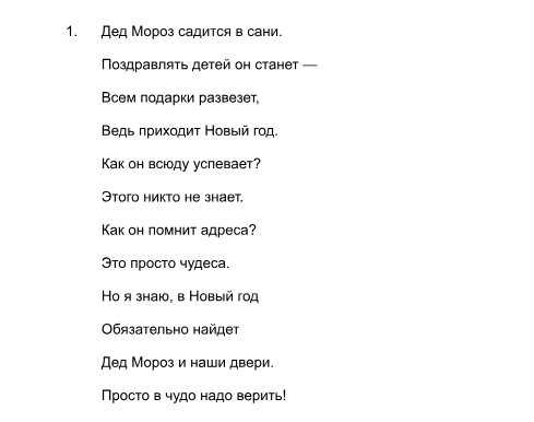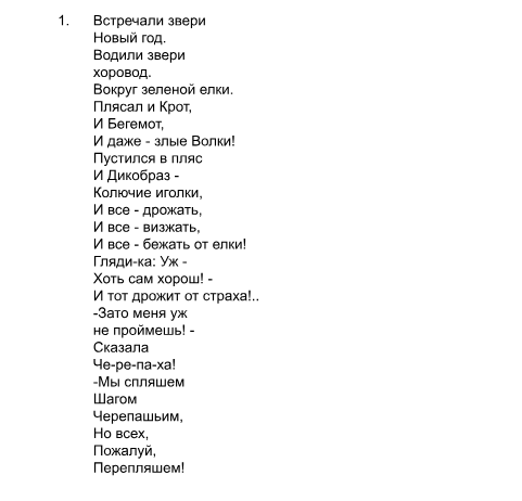 - Короткое — до 8 строк (для малышей) или до 16 строк (для старших). Длинные стихи могут быть сложными для запоминания и выступления.