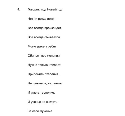 - Разделите задачу на части. Не пытайтесь заставить ребенка заучивать весь текст сразу. Разделите стихотворение на небольшие фрагменты — по две-три строки. После того как ребенок выучит одну часть, можно переходить к следующей. Это поможет ему не перегружаться и постепенно привыкать к тексту.