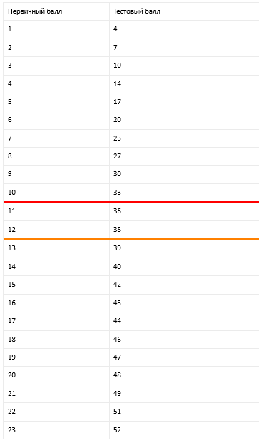 Сначала тебе начисляются первичные баллы. Затем они переводятся в тестовые по специальной шкале. У каждого предмета эта шкала разная. У химии она выглядит так: