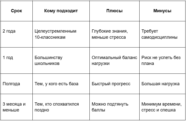 Интенсивная учеба поможет быстро освежить память и закрыть мелкие пробелы. Особенно это круто, если у тебя уже есть база, и ты хочешь подтянуть результат. - Поднимешь свой балл