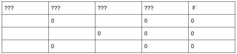 2. Системный подход: выпишем все известное. У нас три строки, где F=0. Выражение: (A) or (B) or (C) = 0 => A=0, B=0, C=0.