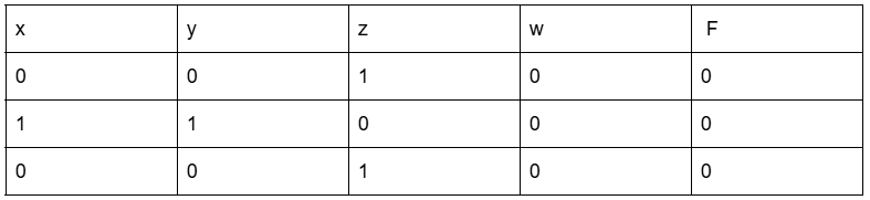 1. Наблюдение: функция F должна быть ложна (0) на всех приведенных наборах. Выражение — это дизъюнкция (or) трех частей. Дизъюнкция ложна только когда ВСЕ ее части ложны.