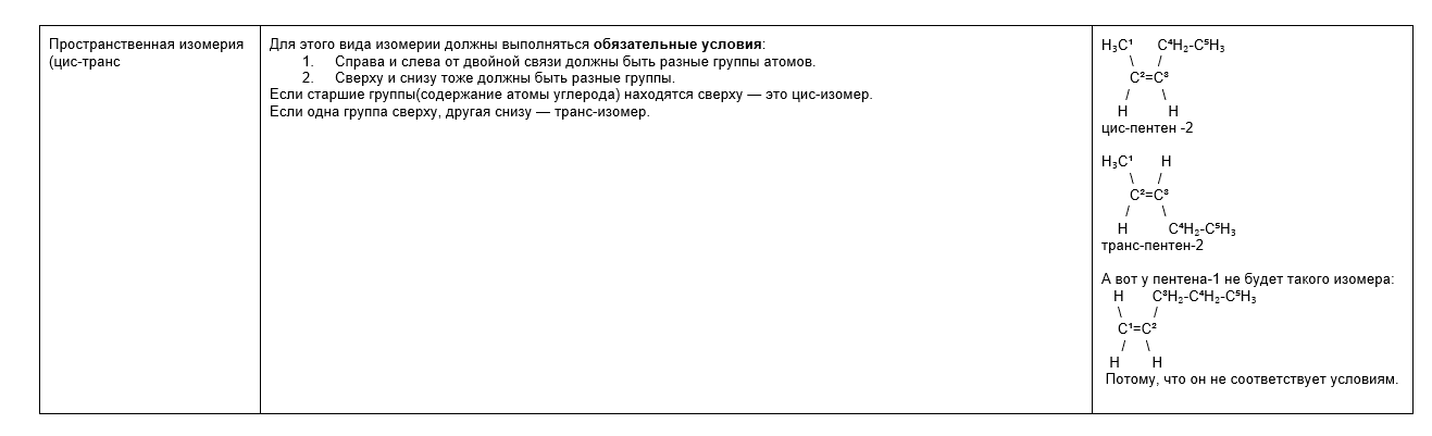 Чтобы было удобно изучать виды изомерии, собрали их в таблице: