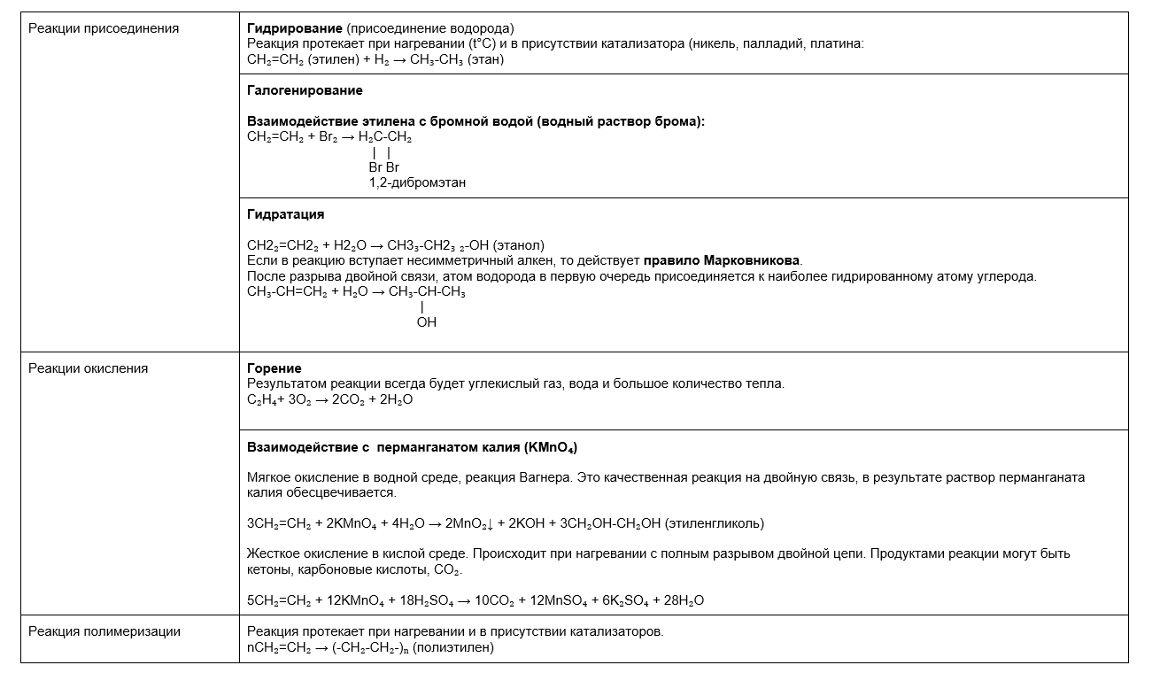 Химические свойства алкенов