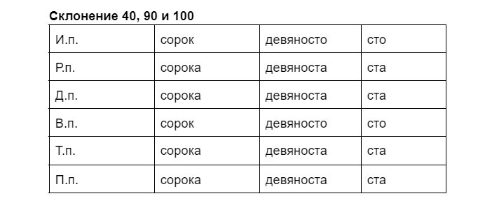 4) Отдельное правило для 40, 90 и 100.