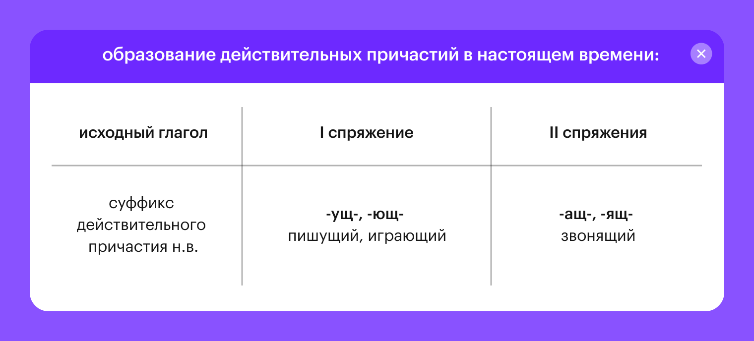 Образование действительных причастий настоящего времени