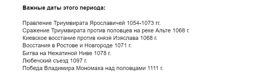 Следующий период развития древнерусского государства начинается сразу после смерти Ярослава — и начинается он именно с междоусобиц. Несмотря на то, что перед смертью правитель разделил земли между наследниками, это не привело страну к единству и стабильности.