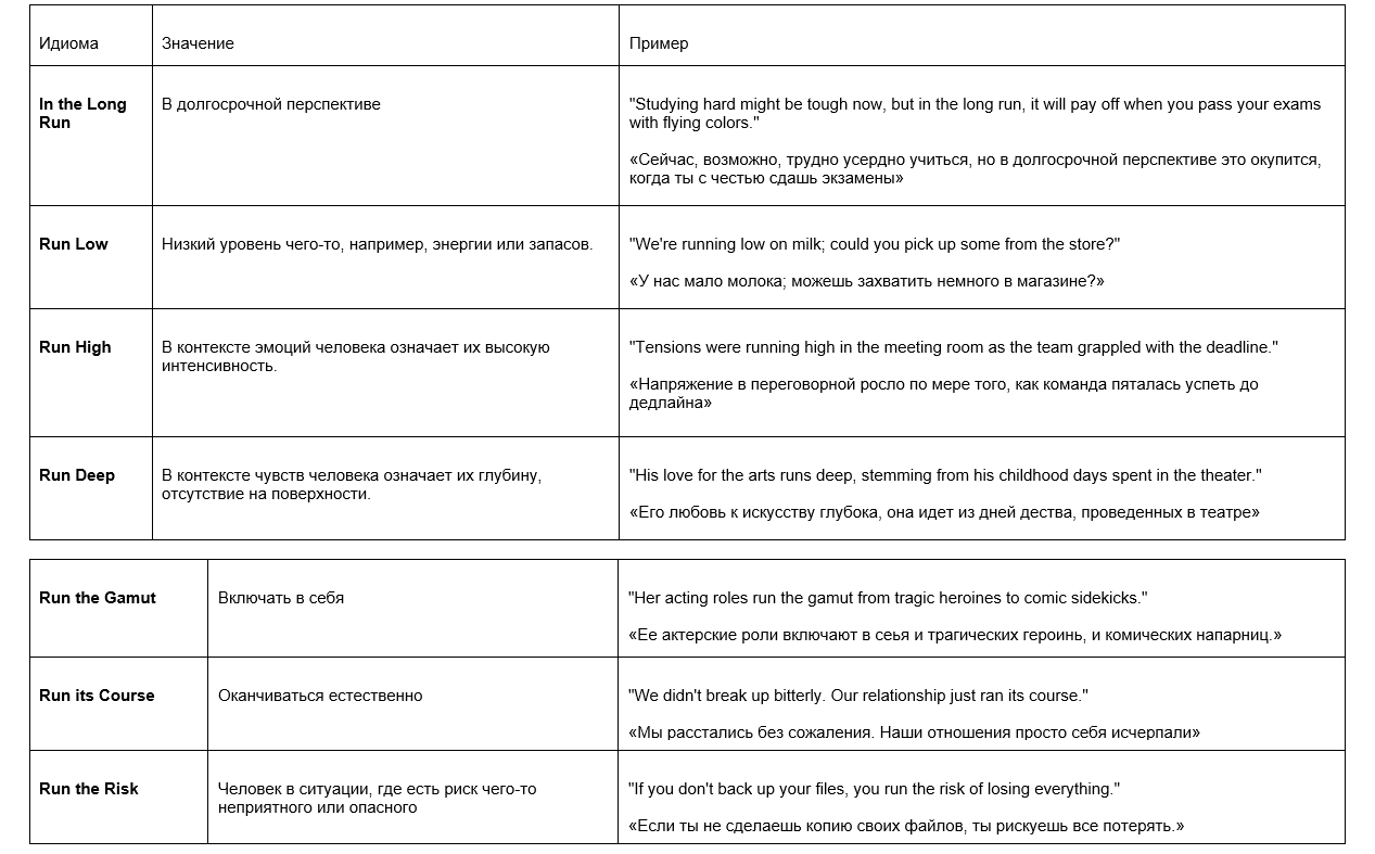 Полезные выражения с глаголом RUN