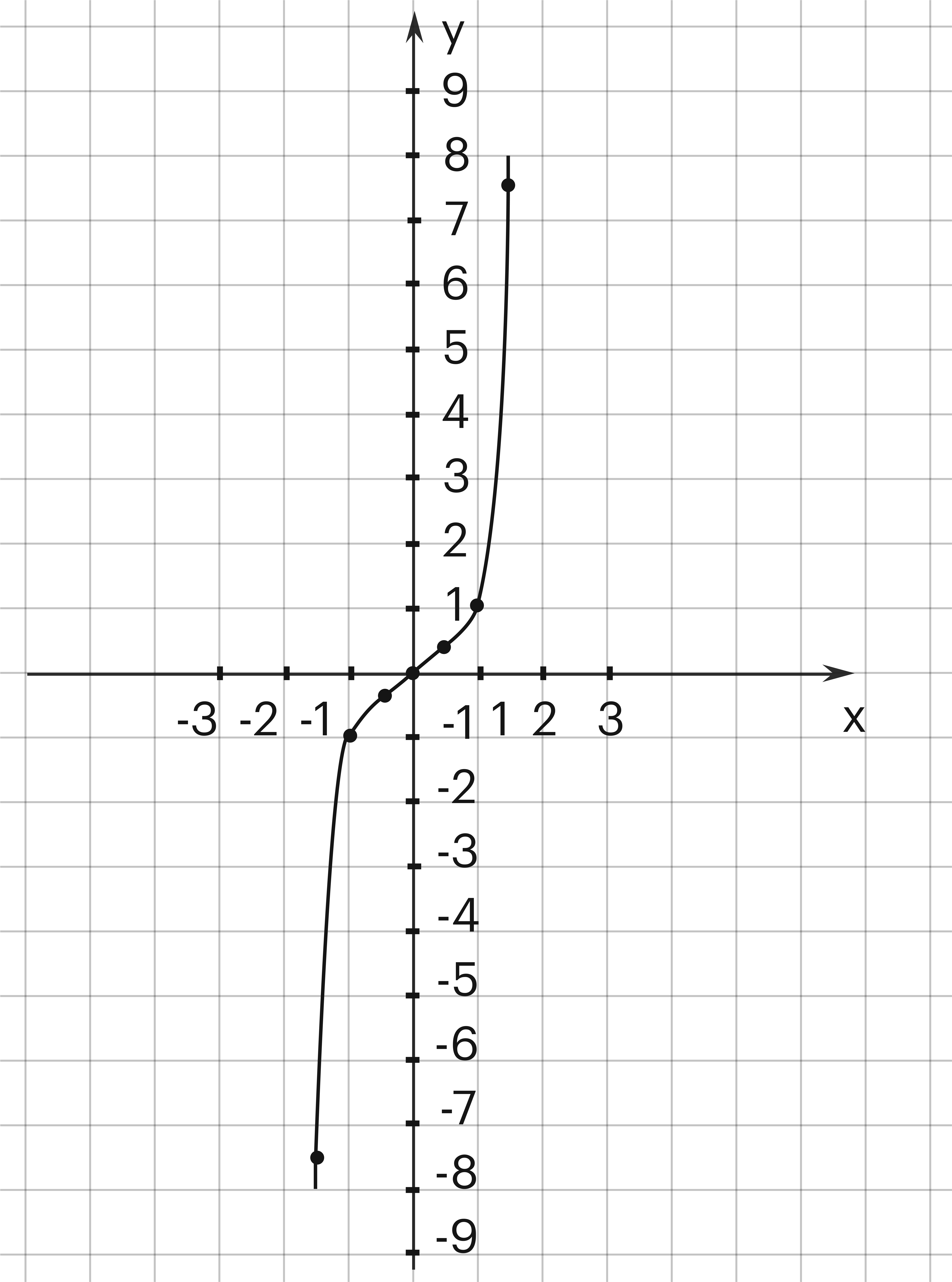 Учитывая все вышесказанные свойства, что график проходит через начало координат и что противоположным аргументам соответствуют противоположные значения функции, построим таблицу только для положительным значений x