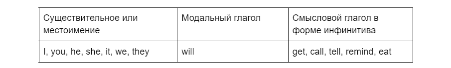 Как мы уже сказали, здесь всё проще простого. Взял существительное, взял глагол — готово, masterpiece! А нет, подожди, для шедевра еще не хватает модального глагола will. В общем, смотри.