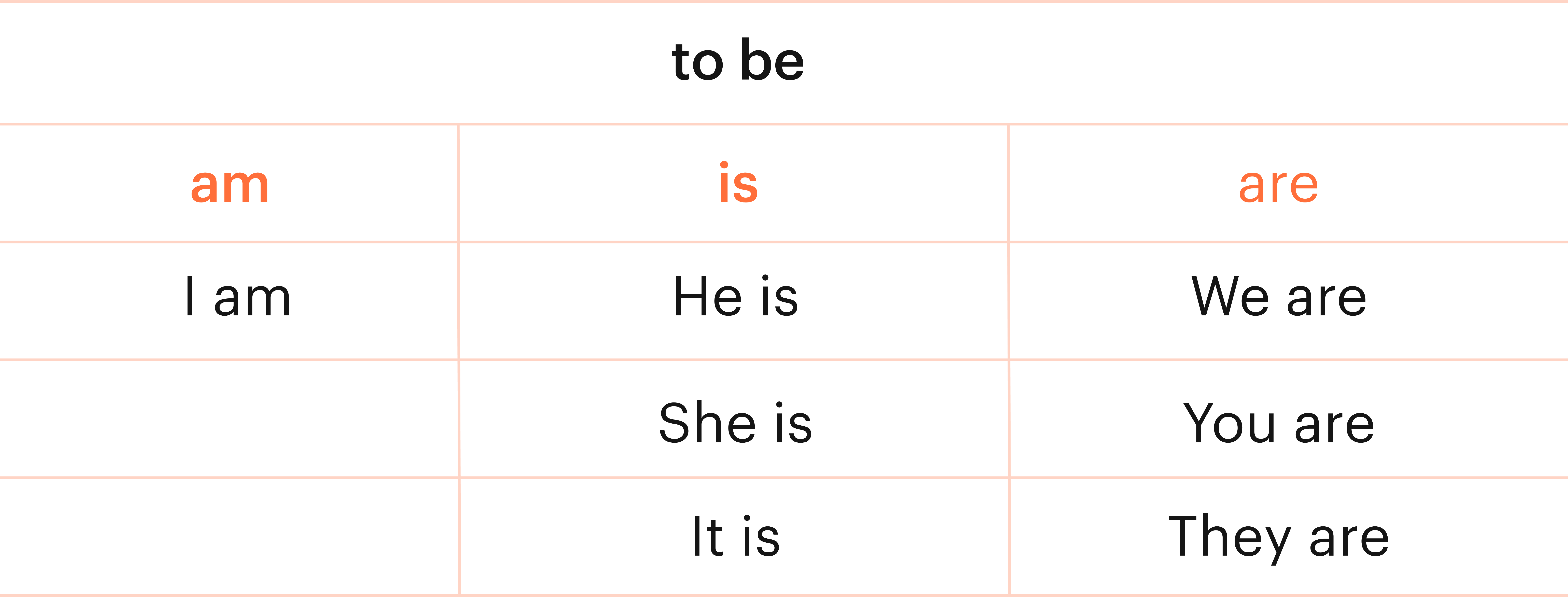 Am используется с I (Я). Is — c he (он), she (она), it (оно). Аre — с местоимениями we (мы), they (они) и you, которое в английском может означать «ты», вежливое «вы» и «вы» при обращении к группе людей.