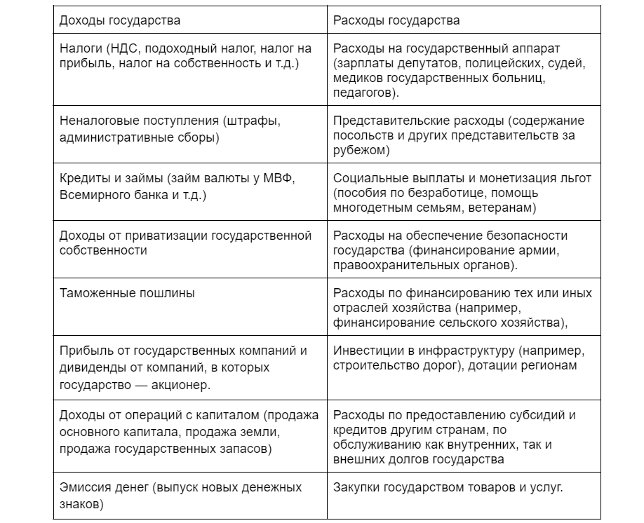 У государственного бюджета тоже есть доходы и расходы.