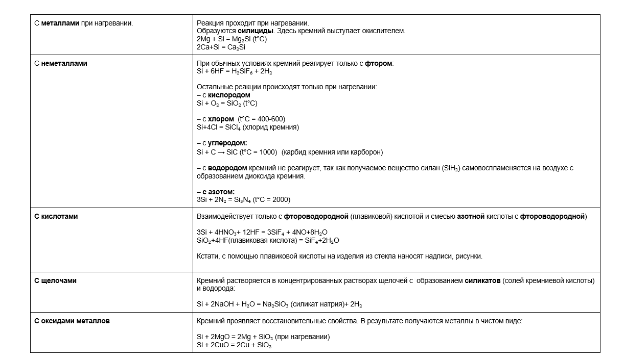 Химические свойства кремния