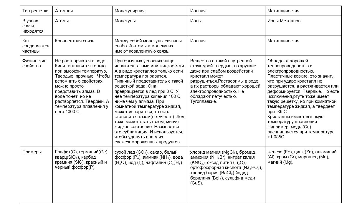 Есть четыре вида кристаллической решетки: