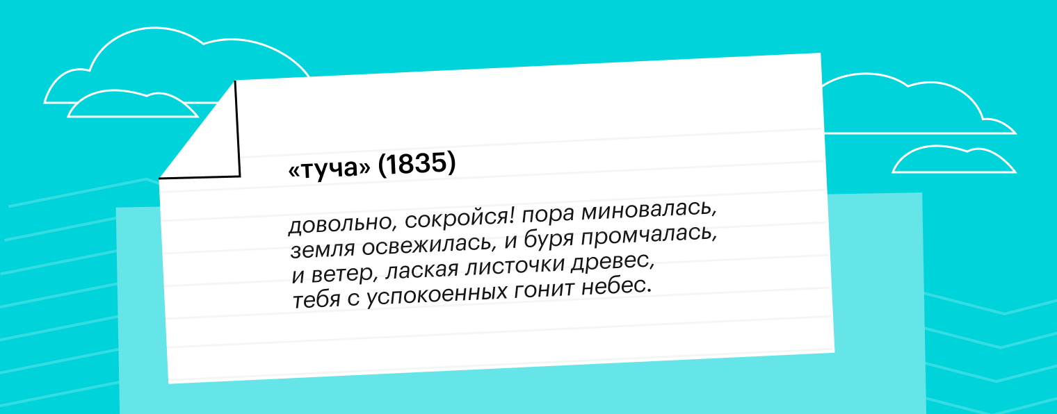 «Туча» — одно из самых известных произведений А.С. Пушкина в пейзажной лирике. И хотя мы только что говорили о патриотизме и любви к Родине, это стихотворение совсем не о том. В «Туче» описания природы олицетворяют чувства лирического героя: сначала на душе у него мрачно и пасмурно, но затем тяжелые времена проходят — и оставляют место для свежести и спокойствия.