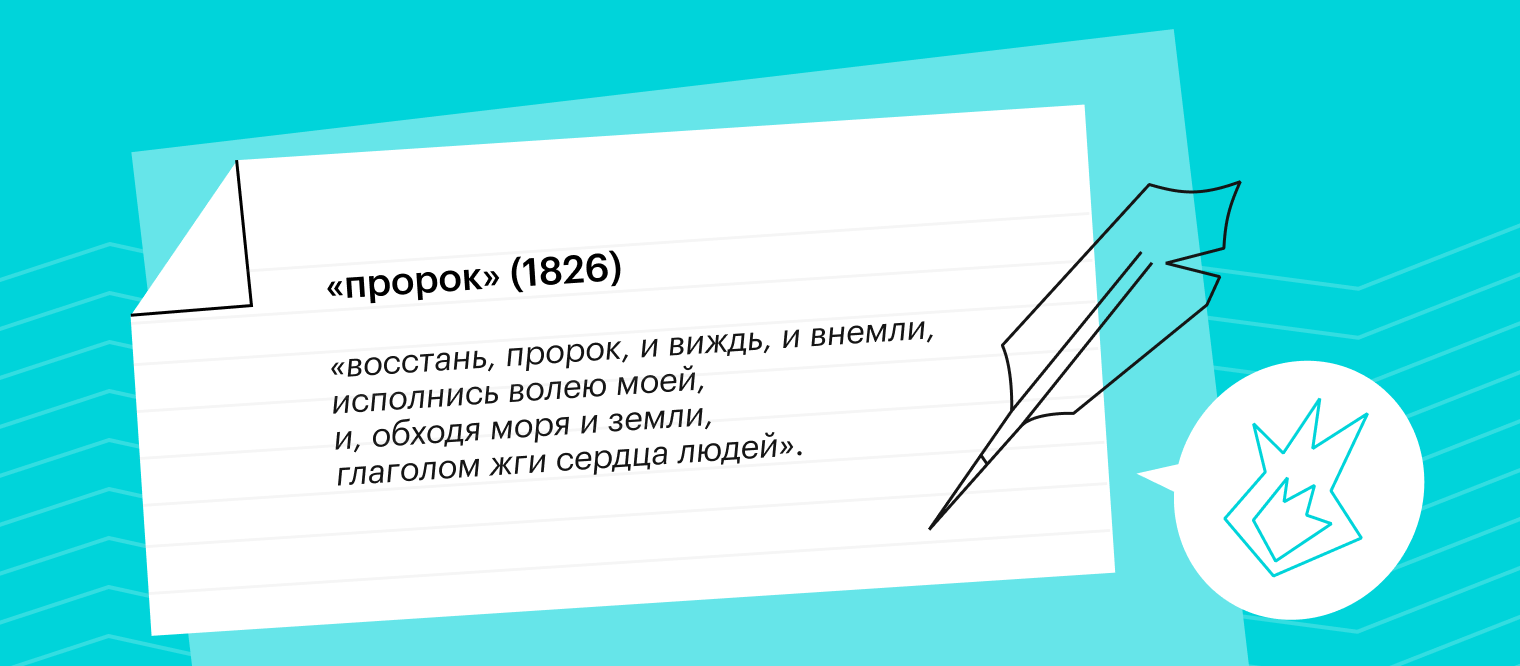 В стихотворении «Пророк» идея о пророческой роли поэта звучит как нельзя более ясно и громко. Шестикрылый серафим, посланник Бога, превращает лирического героя в пророка именно для того, чтобы тот говорил с народом, был голосом народа и зажигал огонь в сердцах людей.