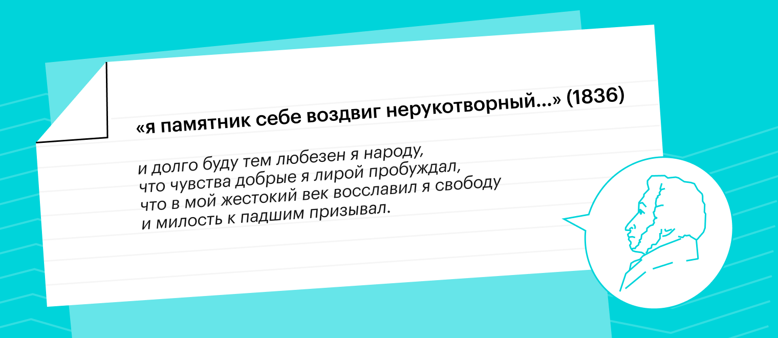 Это стихотворение стало своеобразным «духовным завещанием» А.С. Пушкина. В нем он снова поднимает тему значимости поэта и его творчества в жизни людей, а также того наследия, которое творец оставляет после смерти. Однако лирический герой стихотворения, оставаясь поэтом, не перестает быть гражданином, и его главная задача — внести вклад в общество, сделать что-то важное и полезное для людей. И именно благодаря тому, что он эту роль выполнил, народ будет его помнить.