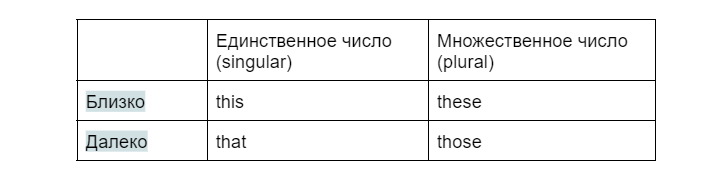 Обрати внимание, что в этой таблице изменился крайний левый столбик. Для указательных местоимений лицо не имеет никакого значения — им важно лишь расстояние до обозначаемого объекта (а то, если он очень далеко, пальцем показать будет сложнее).