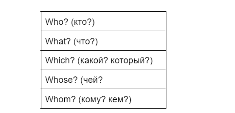 Здесь все то же самое, что и в русском. «Кто?», «Что?», «Когда?», «Кому?» — все эти слова будут относиться к категории вопросительных местоимений. Или, in English, Interrogative Pronouns.