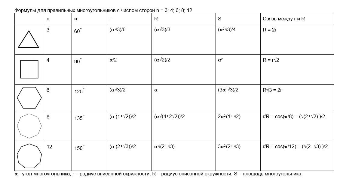 У правильного многоугольника тоже есть несколько полезных свойств: