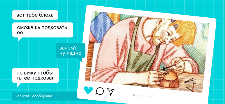 - «мелкоскоп» — откуда тульским умельцам было знать правильное произношение слова «микроскоп», ведь им такие чудеса техники были неведомы.