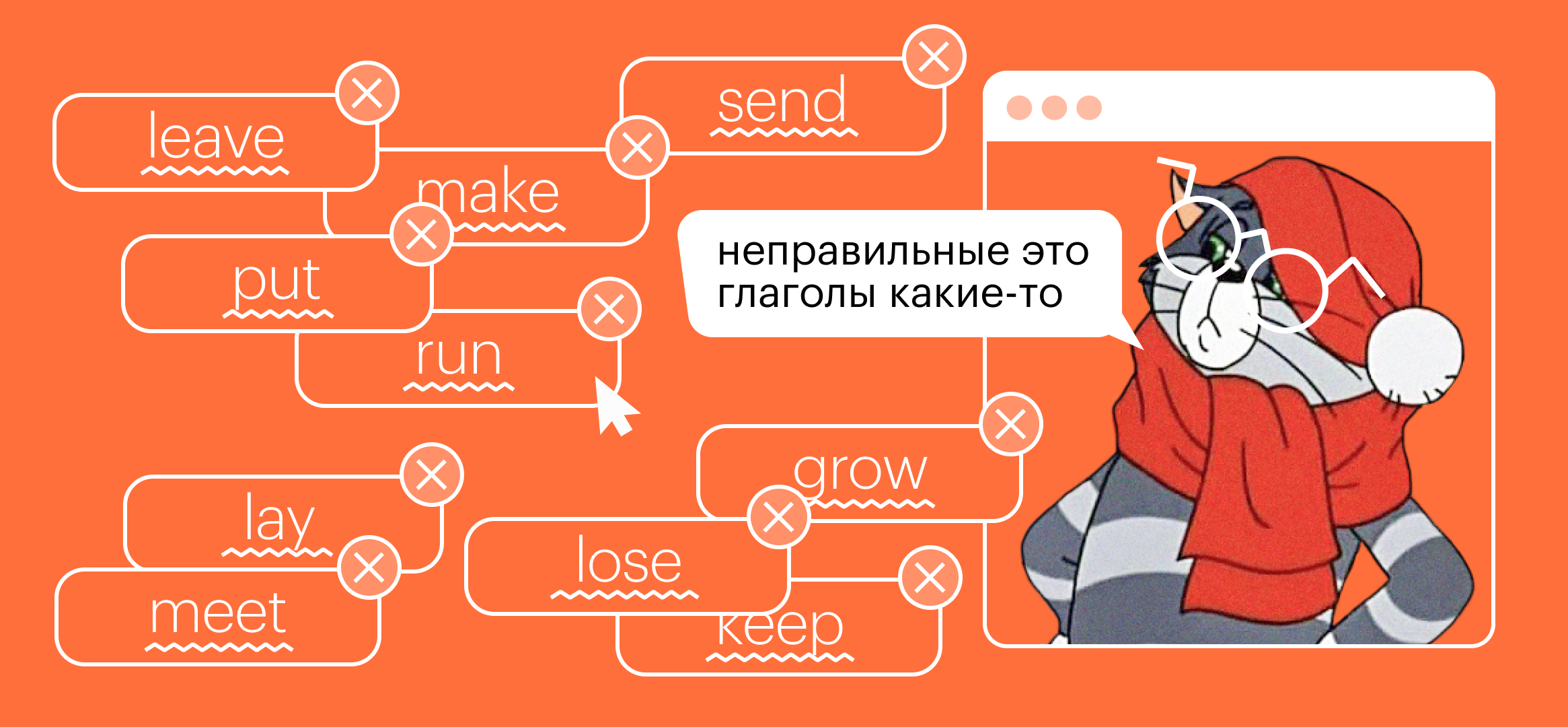 Но этот простой метод изменить слово для нужного нам времени не работает с неправильными глаголами. Они как те своенравные ребята, которые говорят: «Моя жизнь, мои правила!» И в итоге каждый из этих ребят выбрал свою форму для прошедшего времени и причастия. А нам остается только запоминать неправильные глаголы английского языка наизусть, чтобы говорить правильно.
