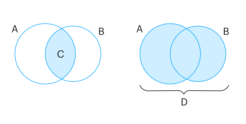 Определение. Объединением двух множеств называют множество, состоящее из всех элементов, принадлежащих хотя бы одному из данных множеств