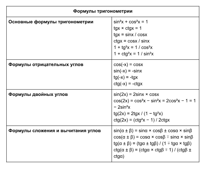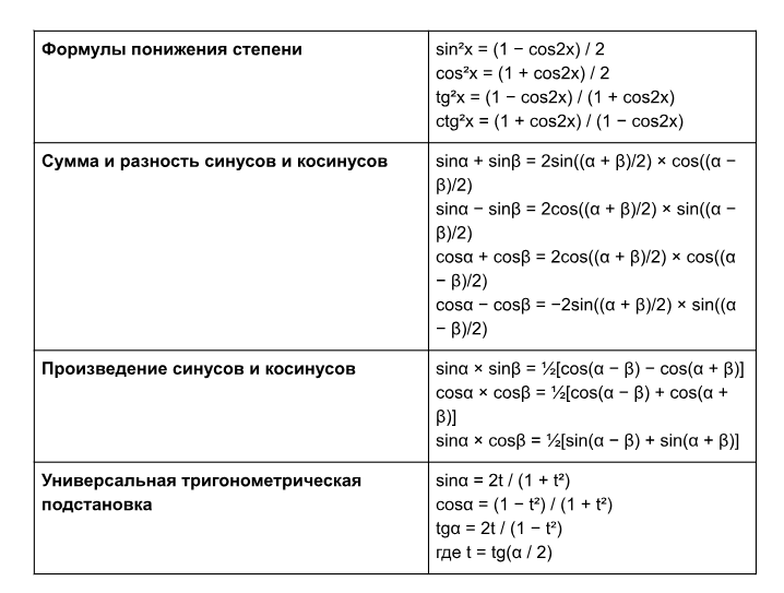 Эти формулы помогают преобразовывать выражения и решать тригонометрические уравнения.