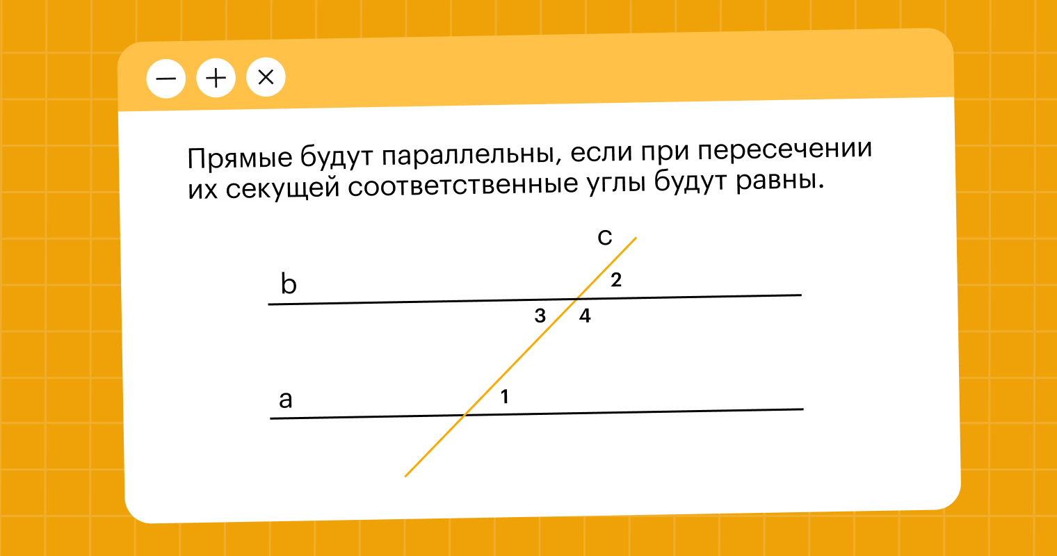 Прямые будут параллельны, если при пересечении их секущей соответственные углы будут равны.