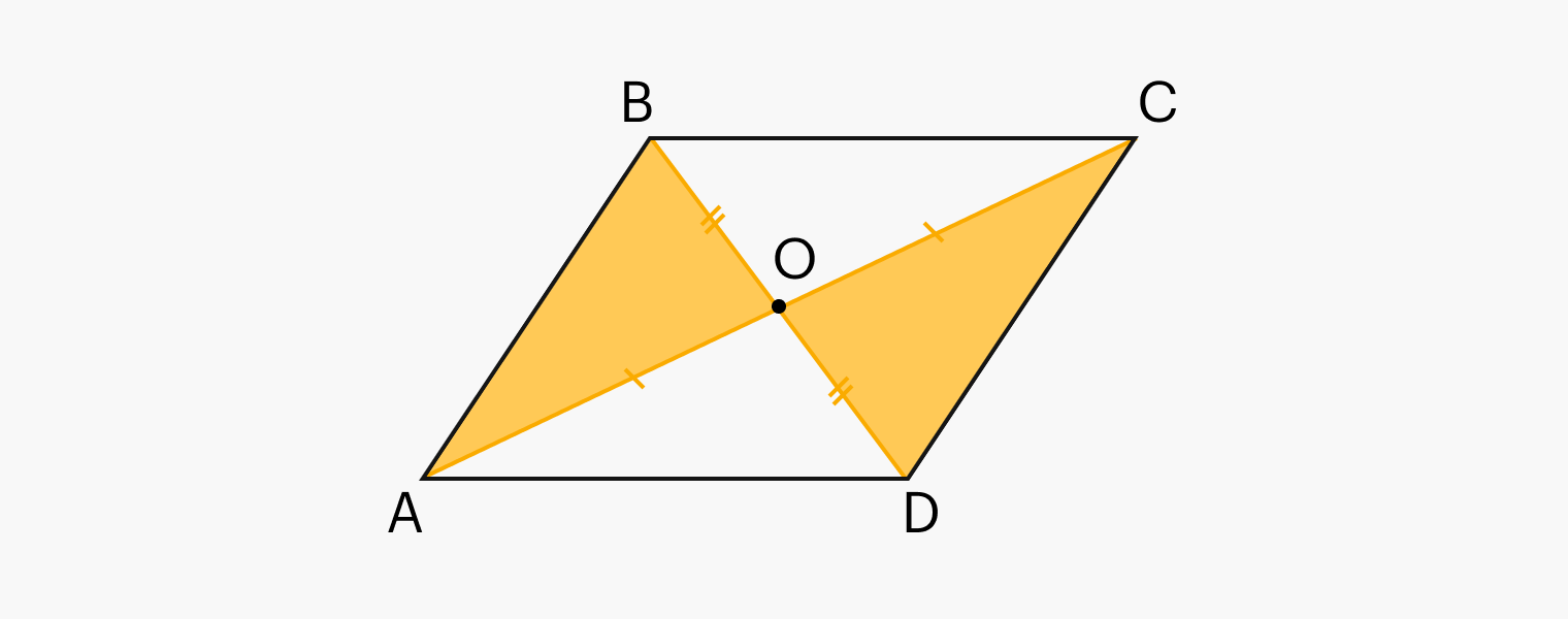 - Точка пересечения диагоналей — это центр симметрии параллелограмма.