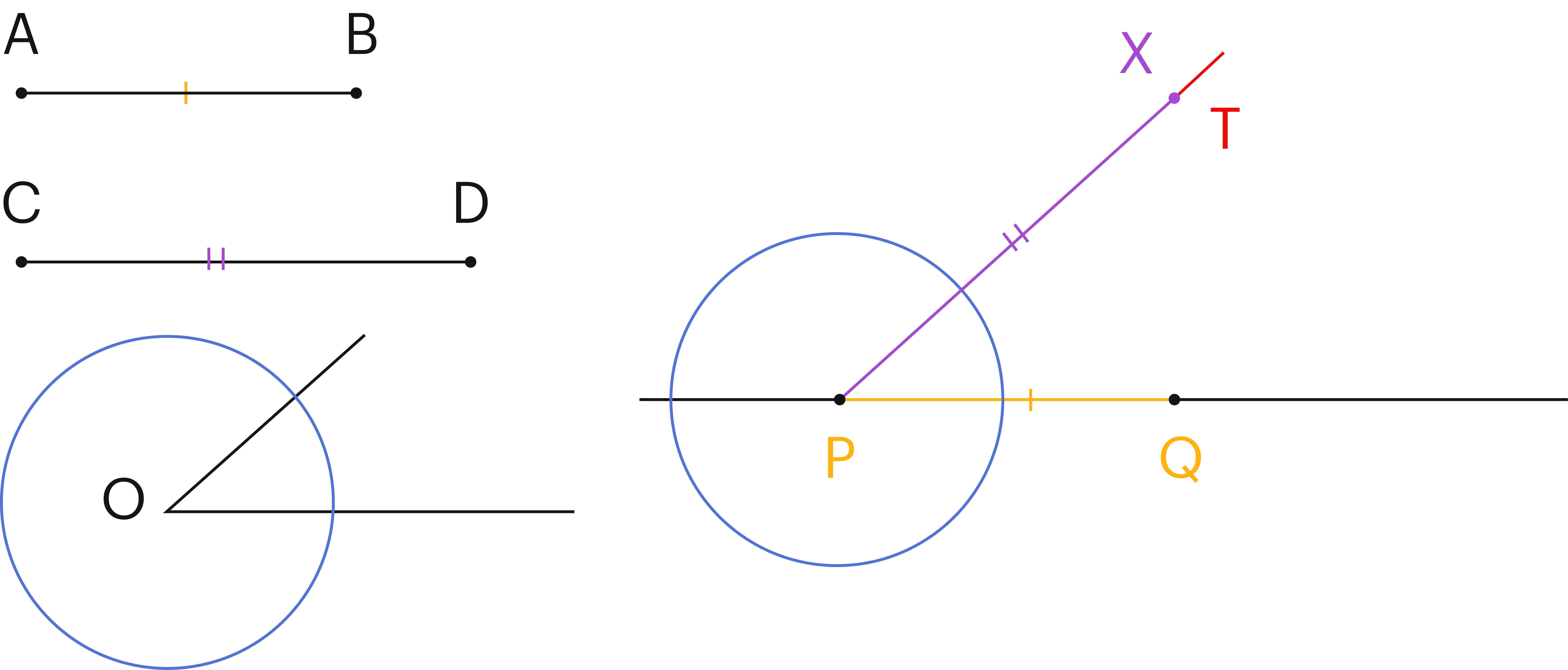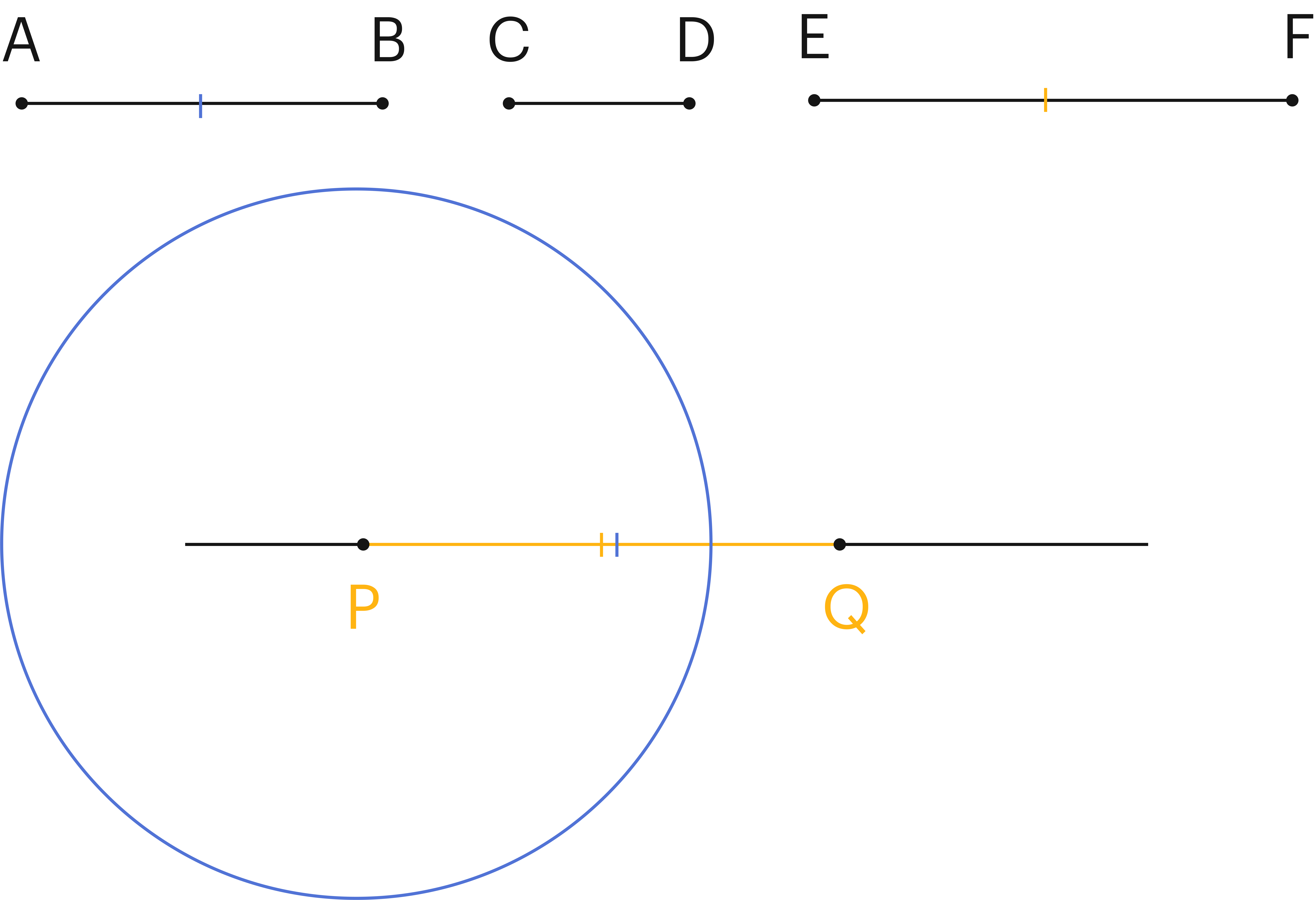 Строим прямую и с помощью циркуля или линейки отмечаем на ней отрезок PQ, который равен отрезку AB