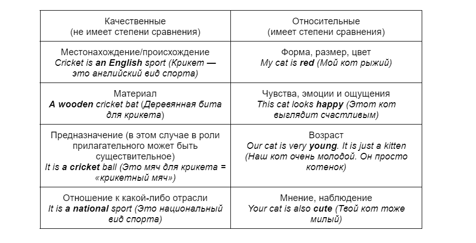 Прилагательное (adjective) — это специальная часть речи, которая дает информацию о предмете и характеризует его. Отвечает на вопрос «какой?» — “which?”, “what kind of?”