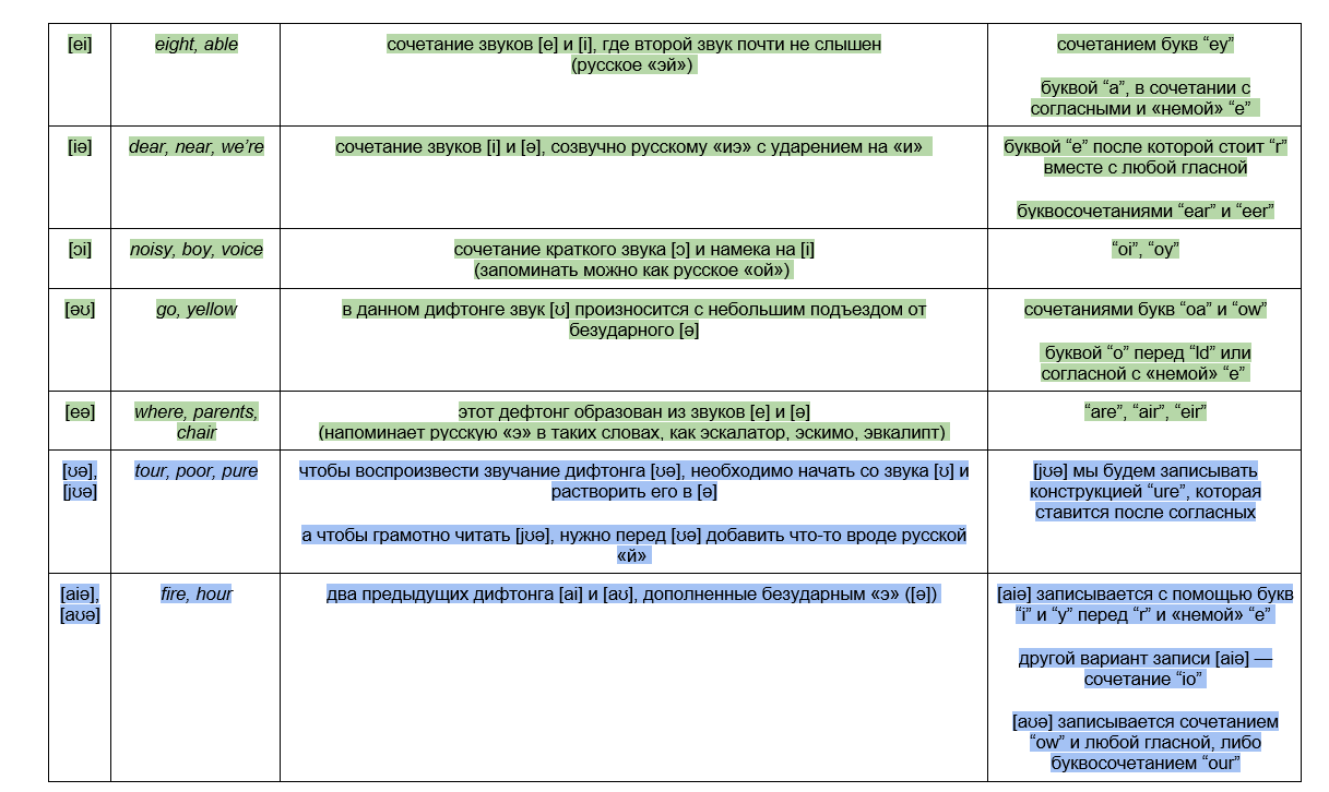 Иногда к дифтонгам добавляется еще один звук. Он едва слышен и даже называется «немым». В этом случае мы можем говорить о трифтонгах. Не пугайся, их совсем немного.