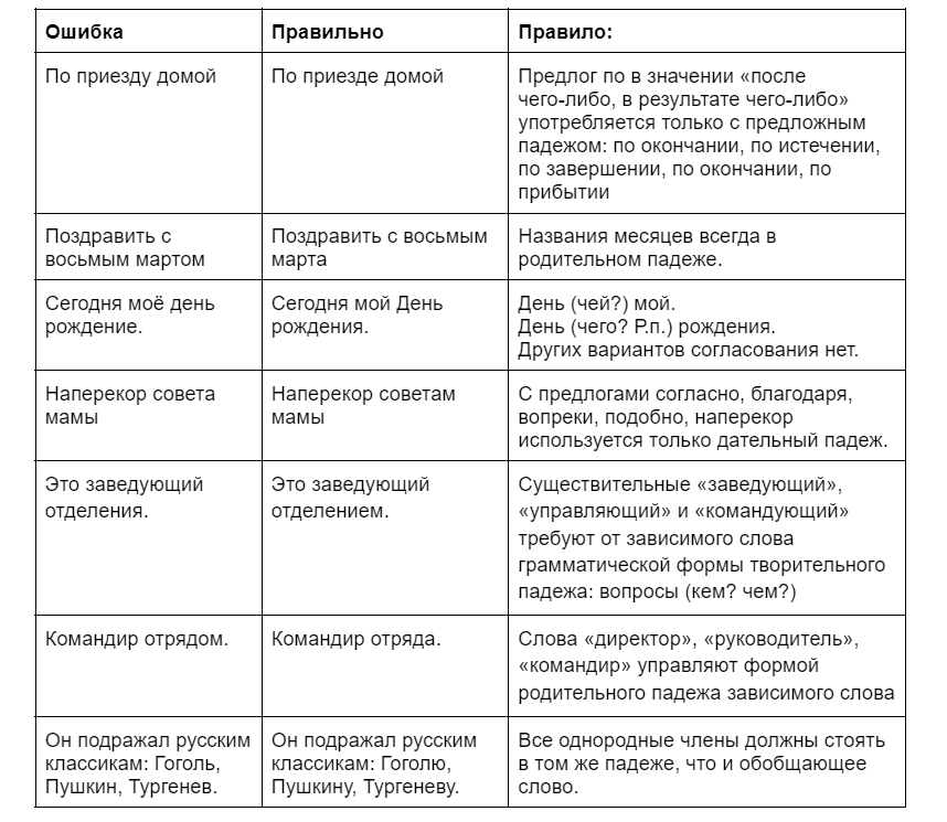 4) Когда мы часто слышим ошибочные варианты. В этой ситуации стоит просто запомнить правильное употребление. Вот они: