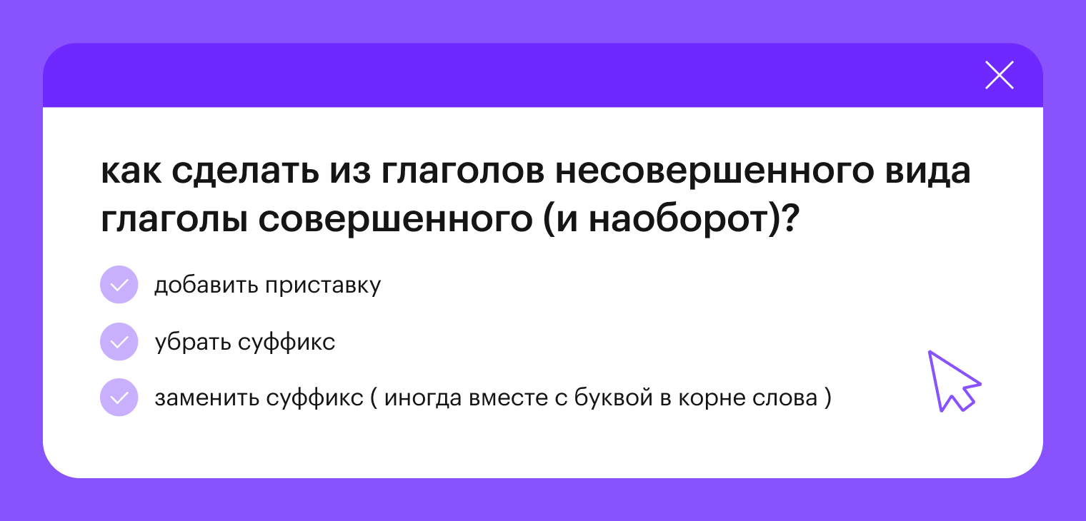 Из глаголов несовершенного вида мы легко можем сделать глаголы совершенного (и наоборот). Вот несколько способов: