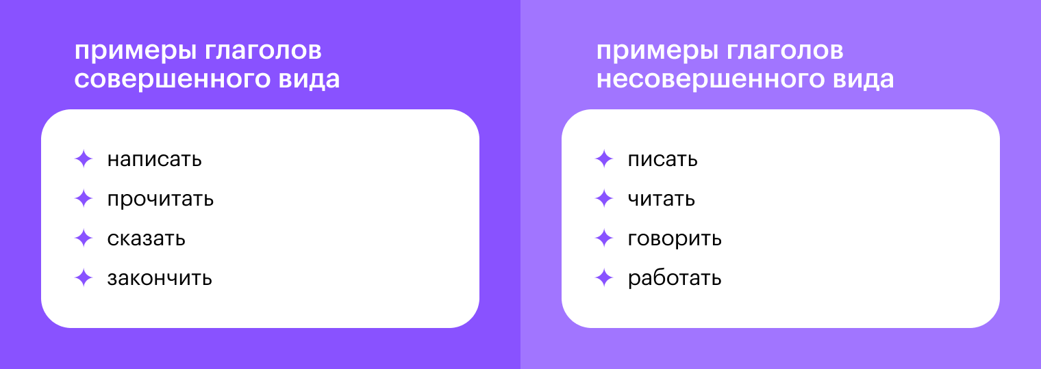 Чтобы научиться их отличать друг от друга, давай посмотрим на примеры глаголов разного вида.