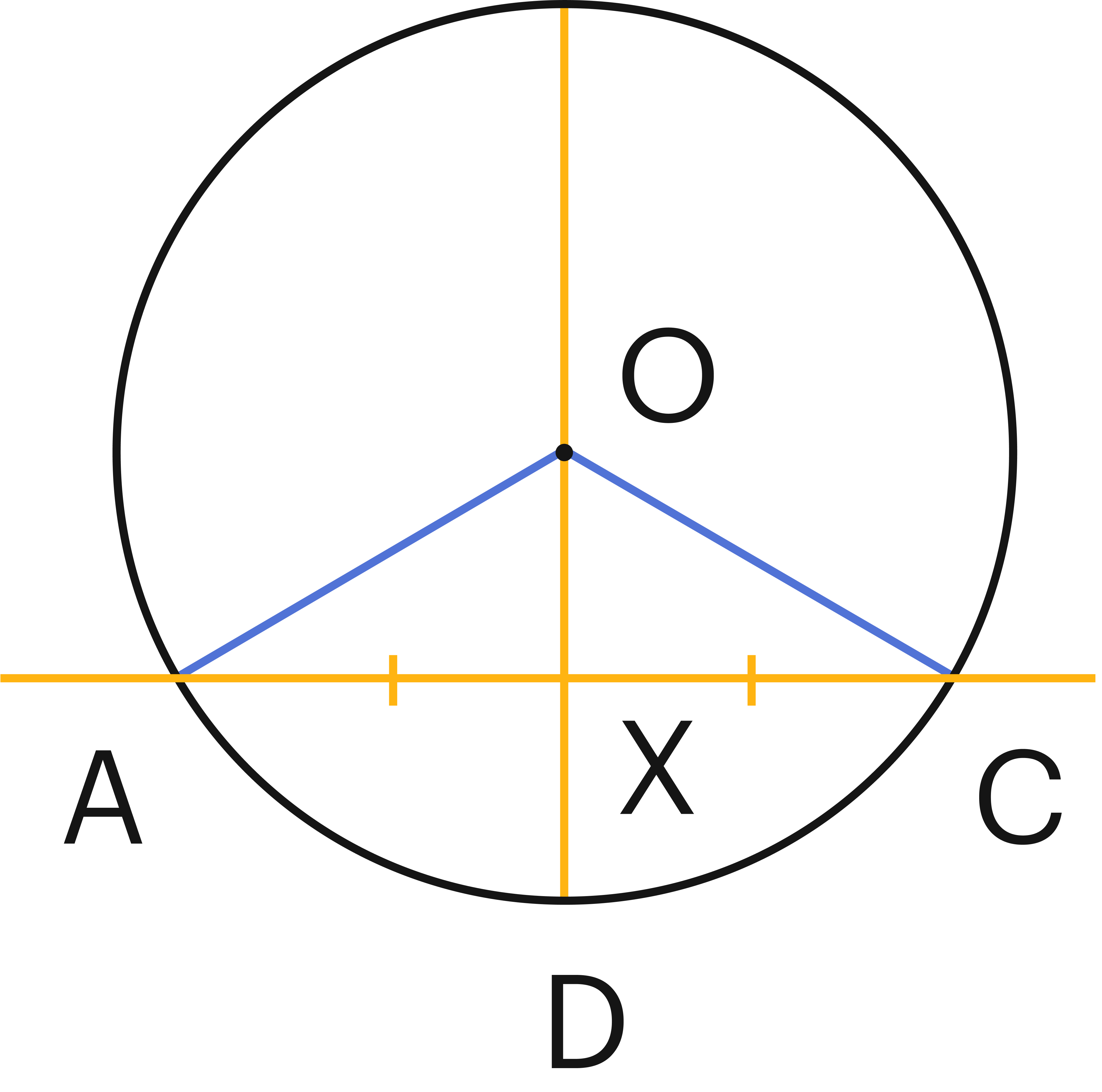 1. Диаметр, проведенный через середину хорды, перпендикулярен этой хорде