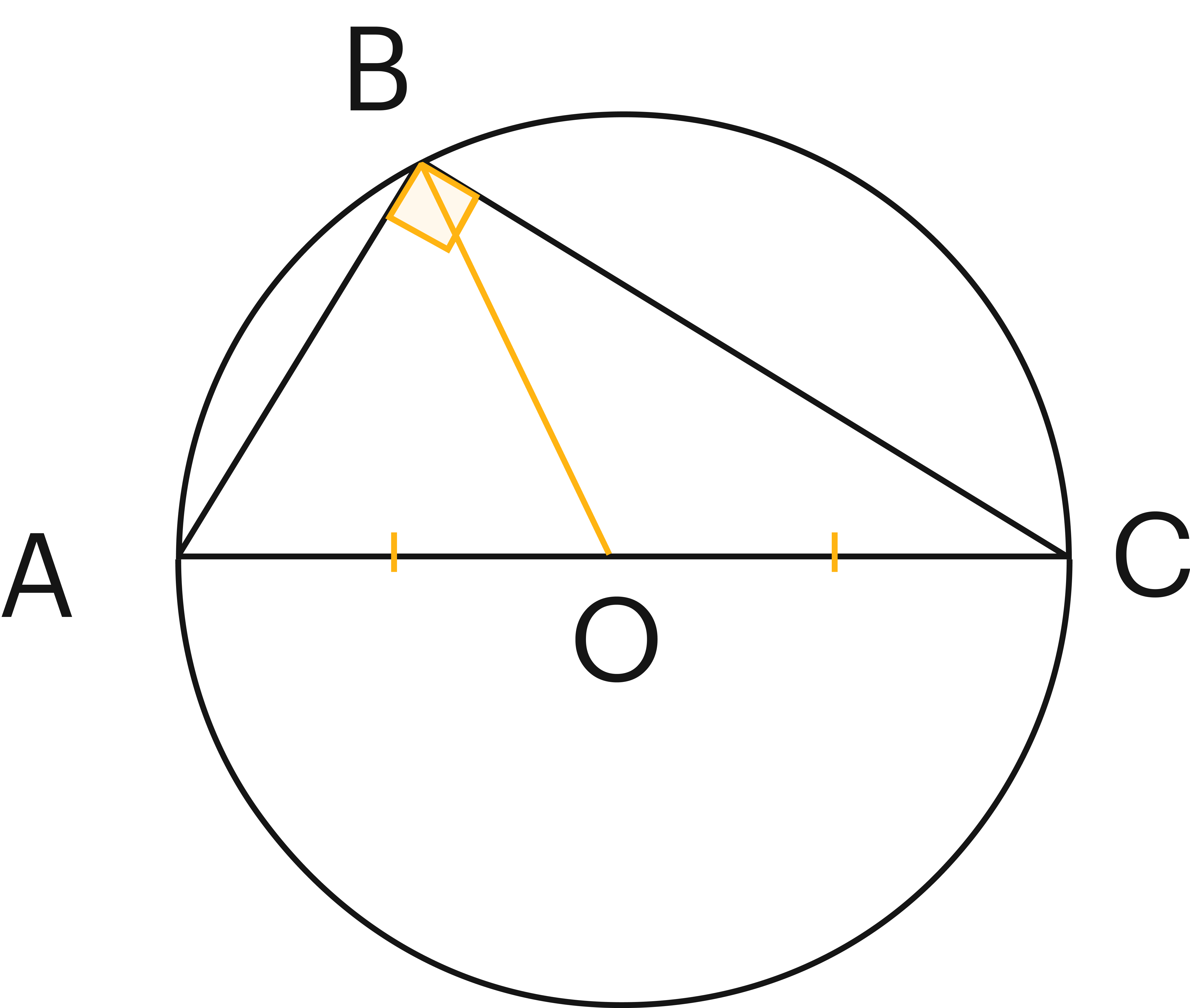 Доказательство: если для точки B угол ABC прямой, то в прямоугольном треугольнике ABC, то медиана BO равна половине гипотенузы BO = AO = OC. Так как гипотенуза является радиусом для окружности, то точка B лежит на ней