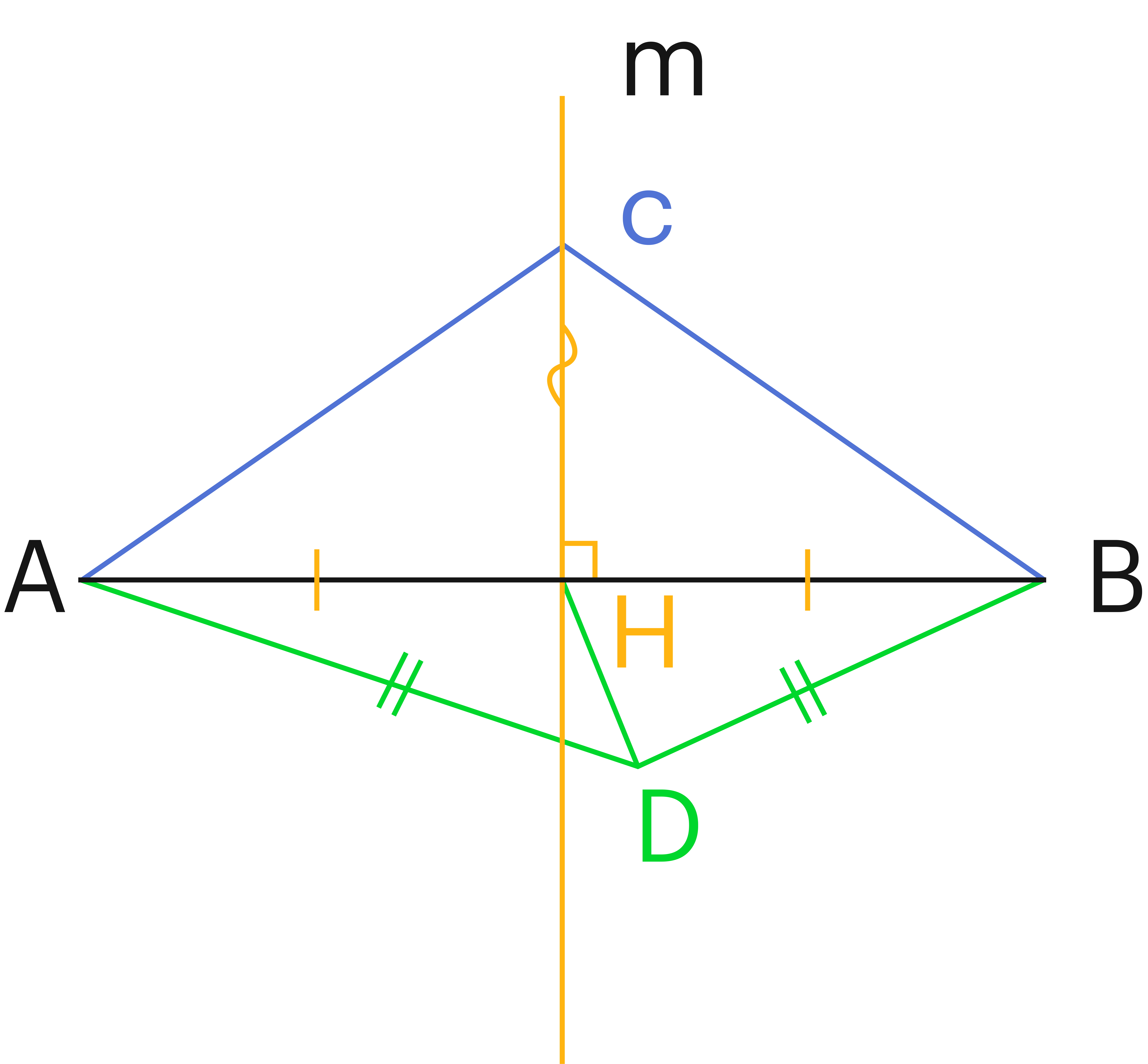 Следствие 1. Геометрическим местом точек плоскости, равноудаленных от концов отрезка , является серединный перпендикуляр к этому отрезку