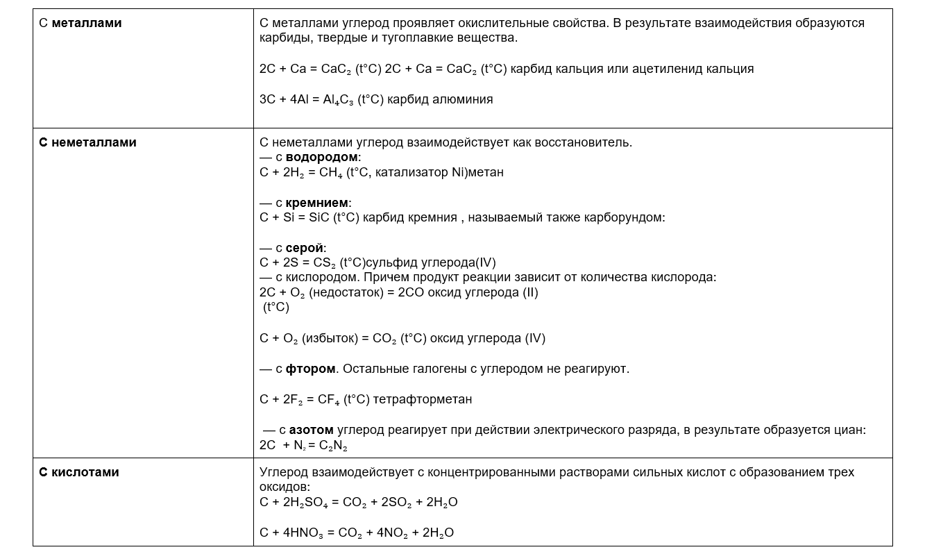 Химические свойства углерода