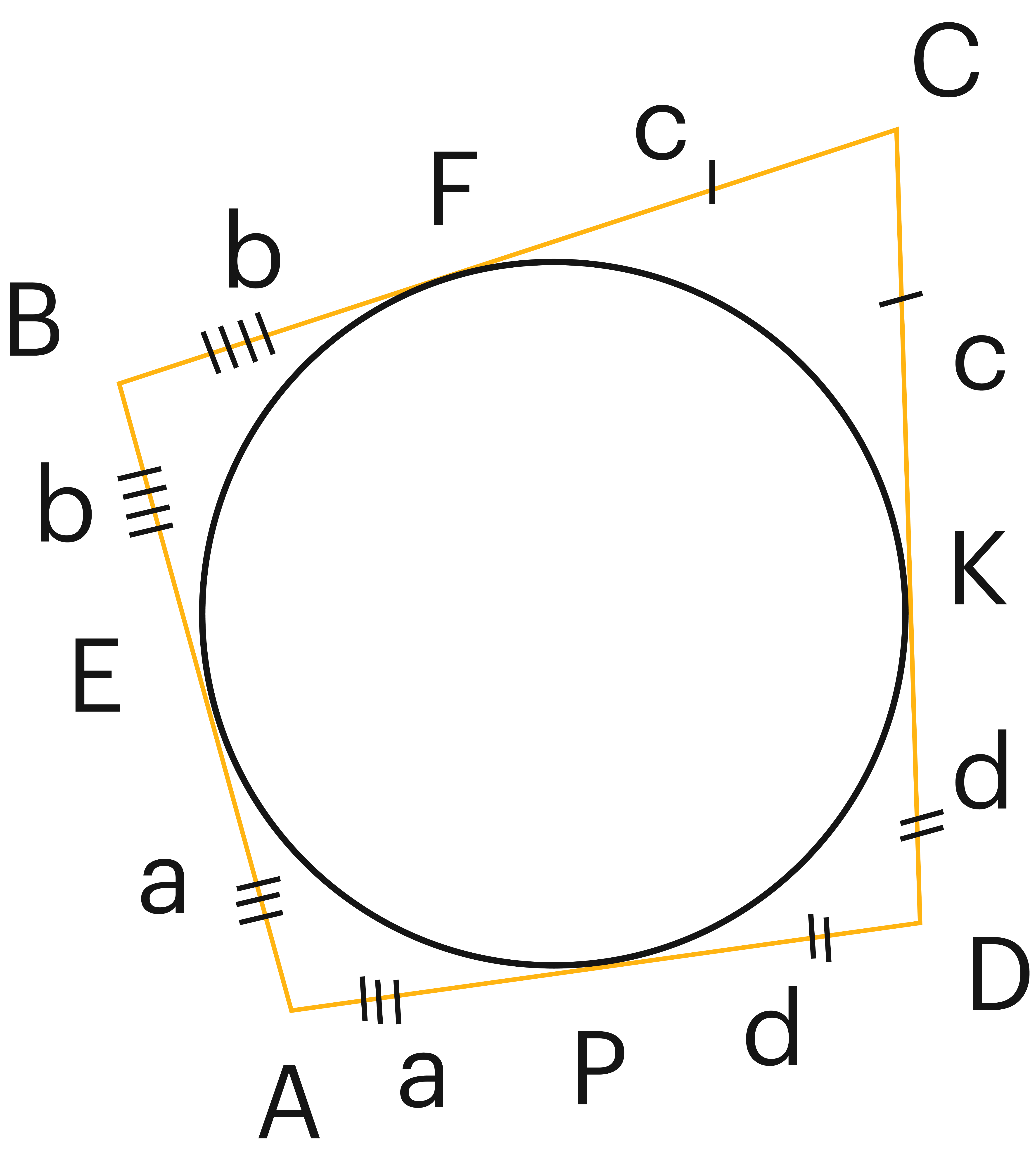 AE=AP=a , BE=BF=b ,CF=CK=c , DK=DP=d