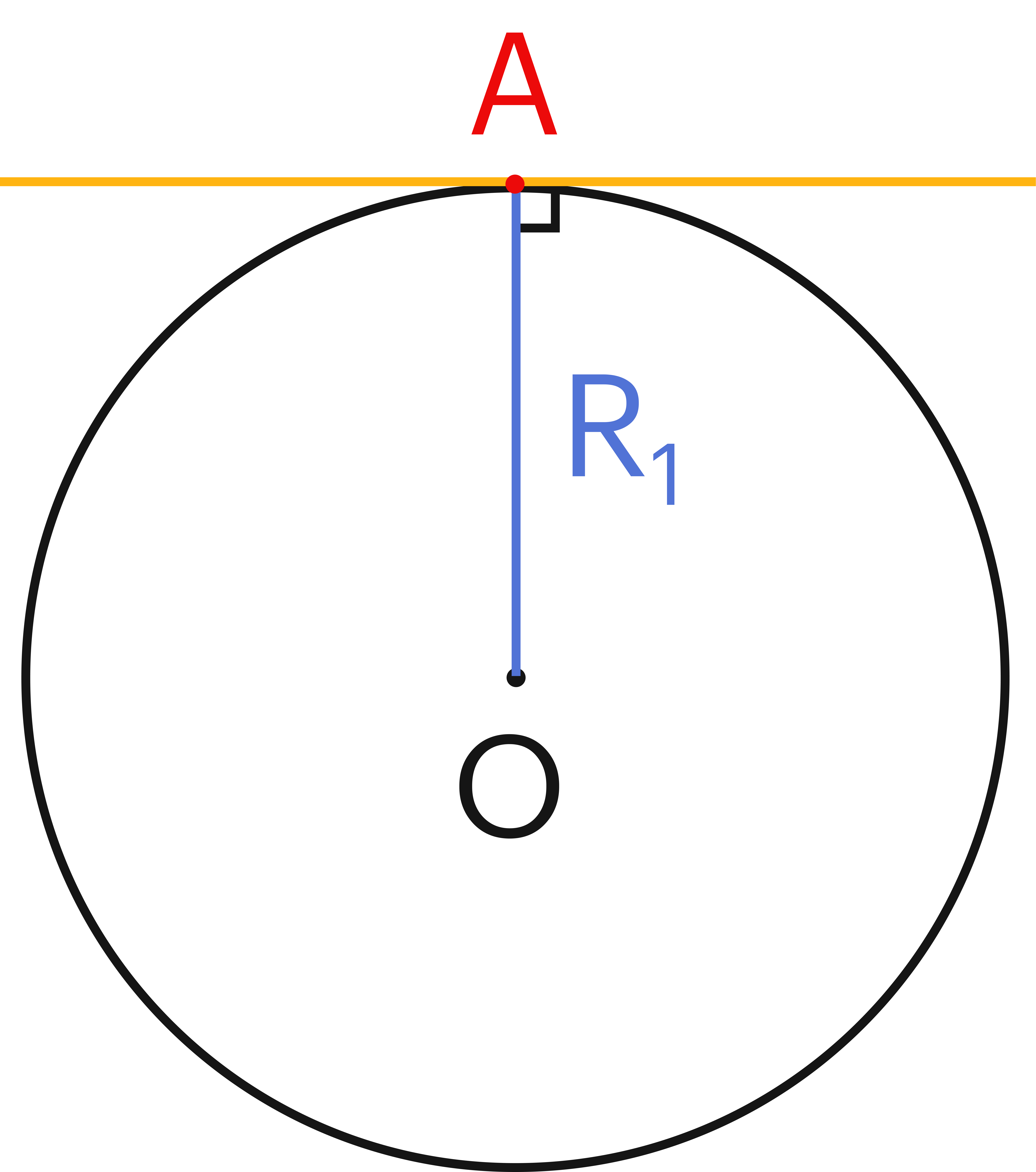 Теорема. Касательная к окружности перпендикулярна к радиусу, проведенному в точку касания.
