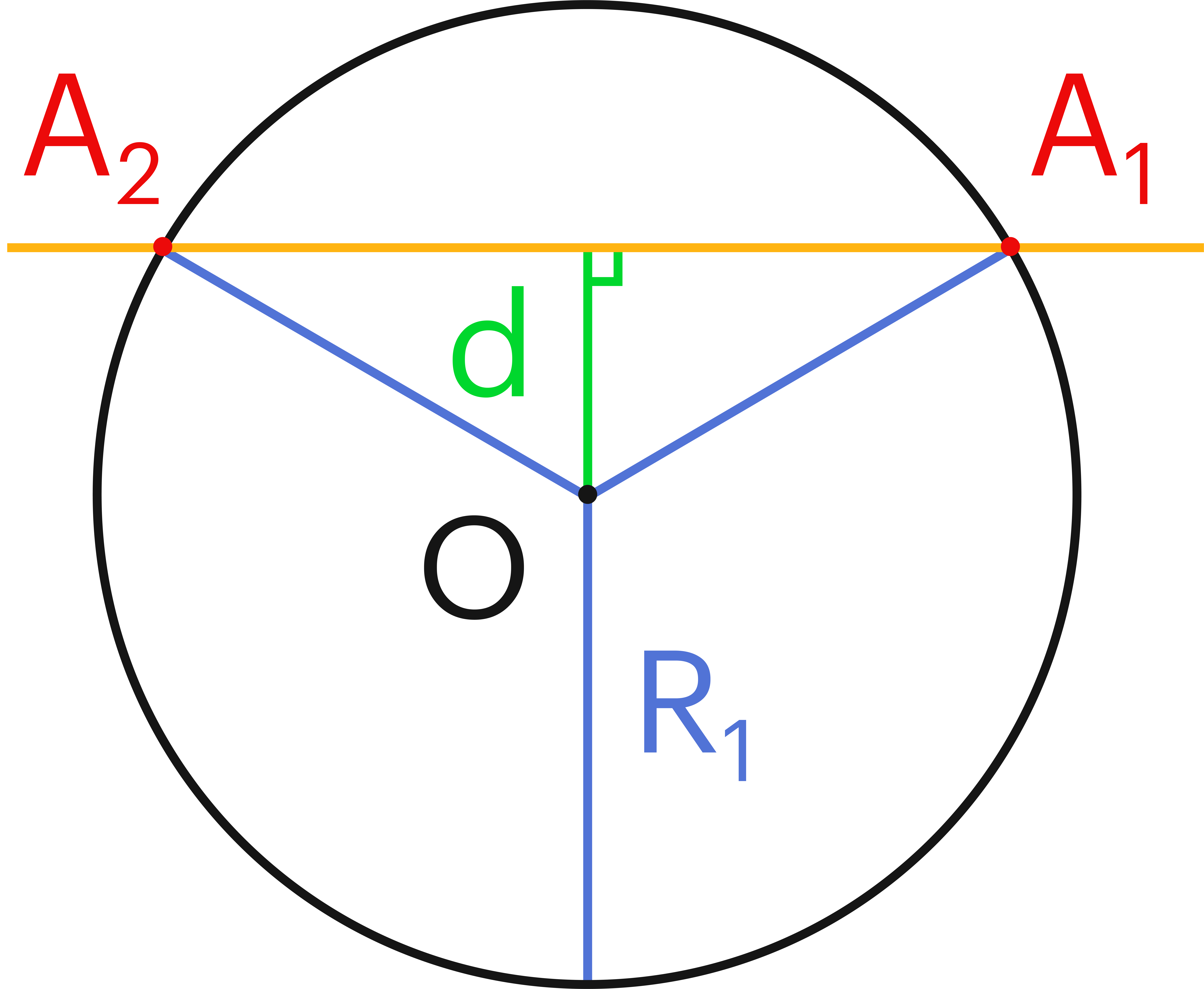 Расстояние от центра окружности до прямой меньше радиуса окружности d < R.