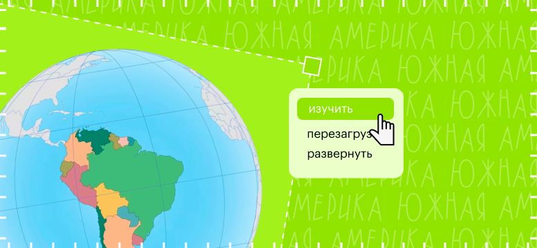 Южная Америка — 4-й по размерам континент, один из шести материков планеты Земля. Омывается двумя океанами (Тихим и Атлантическим) и Карибским морем.