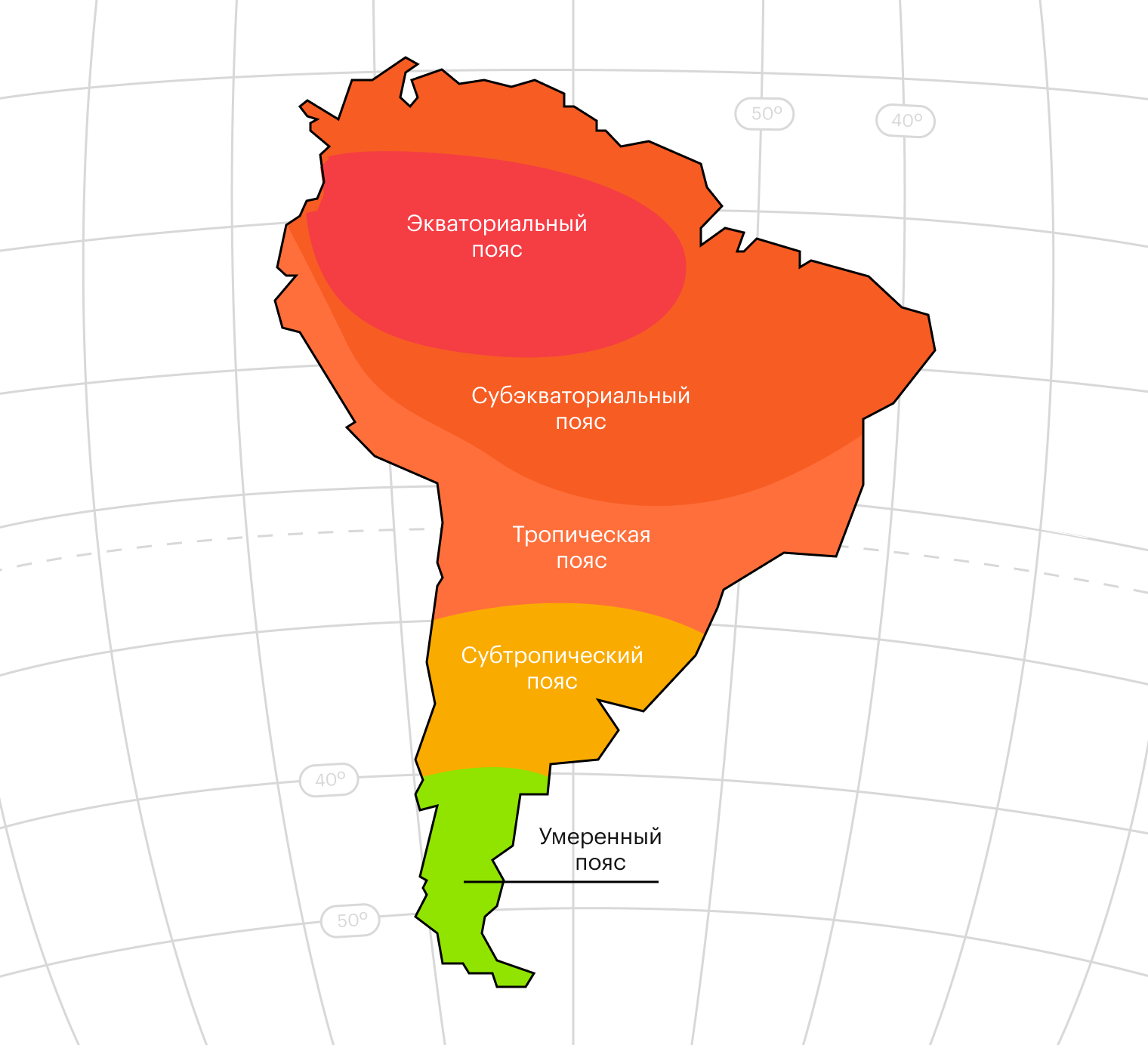 Какой климатический пояс не затрагивает континент Южная Америка?