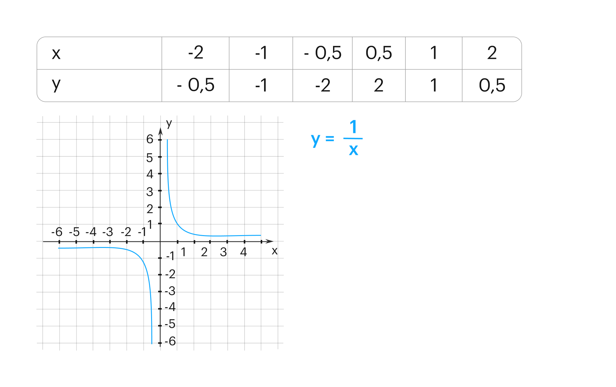 4. Для гиперболы, в уравнении которой k > 0, значения функции отрицательны, если значения аргумента меньше нуля, если значения аргумента больше нуля, то значения функции тоже больше нуля